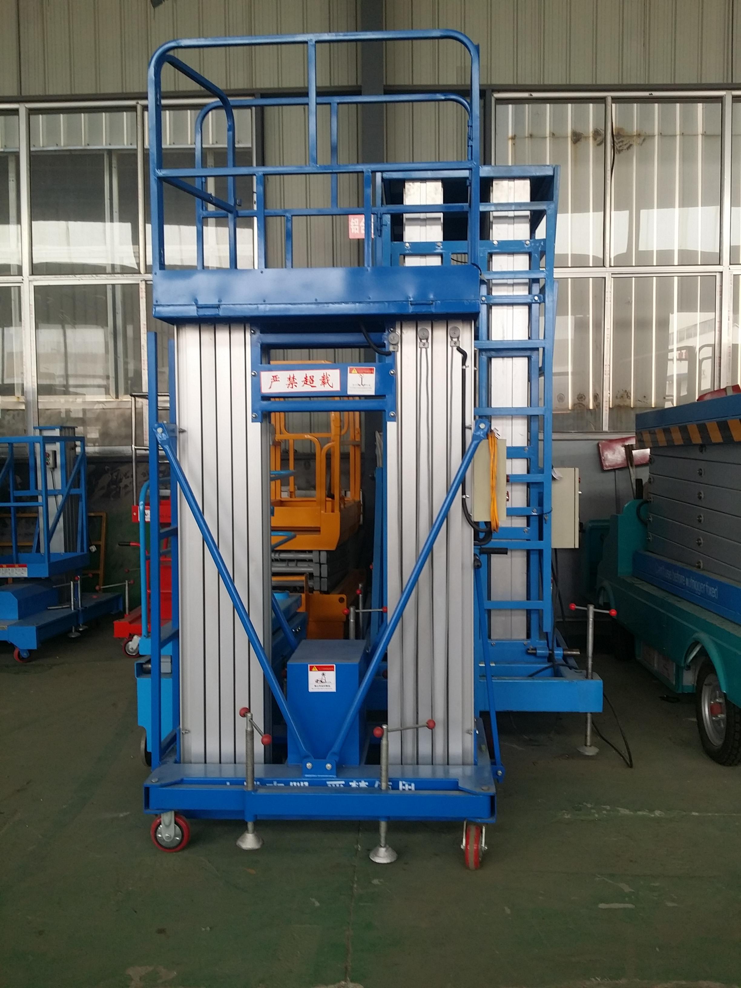 鋁合金液壓升降機采用高強度優質鋁合金材料,具有造型美觀、體積小、重量輕、運轉靈活,推行方便。升降平穩、安全可靠等優點。它輕盈的外觀,能在小的空間內 發揮高的舉升能力。鋁合金液壓升降機廣泛用于工廠、賓館、餐廳、車站、影劇院、展覽館等場所,是保養機具、油漆裝修、調換燈具、電器、清潔保養等用途的安全伴侶。