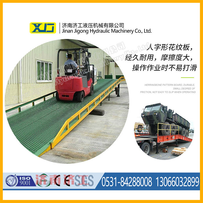 液壓式可移動登車橋是一種方便、快捷、安全、科學、省時、省力、省人工的叉車上下裝卸操作平臺,適用碼頭、集裝箱裝卸,是貨物裝卸的必需品,濟工機械、走遍世界!