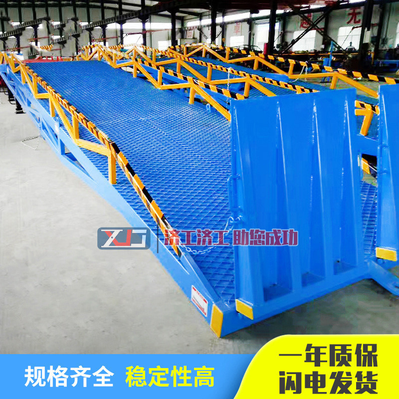 作為一種特殊的輔助裝卸工具,可以節(jié)省人力,提高裝卸效率。移動(dòng)式液壓裝卸橋用于現(xiàn)場(chǎng)沒有裝卸平臺(tái)或需要移動(dòng)式裝卸貨物的地方。與固定登橋相比,使用更加靈活,安裝方便,不需挖坑。作業(yè)完成后,可轉(zhuǎn)移到其他地方繼續(xù)作業(yè),節(jié)約成本。